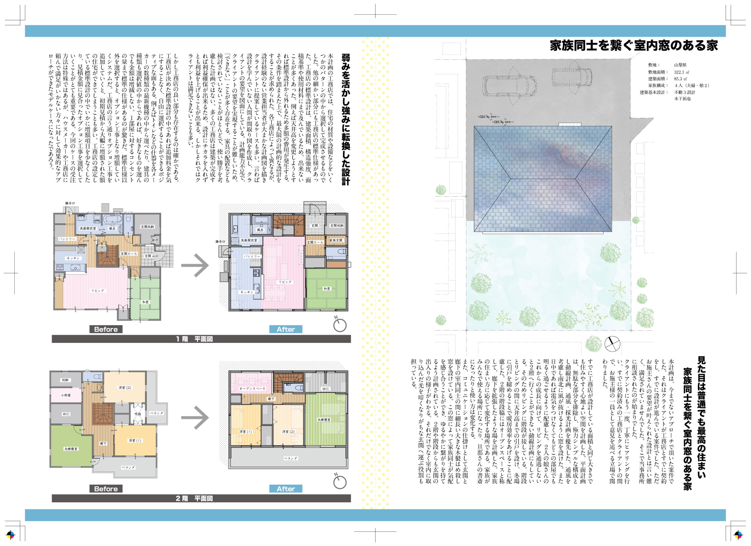 この窓によって家族同士が気配を感じ合うことができ、ゆるやかに繋がりを持てるよう計画されています。